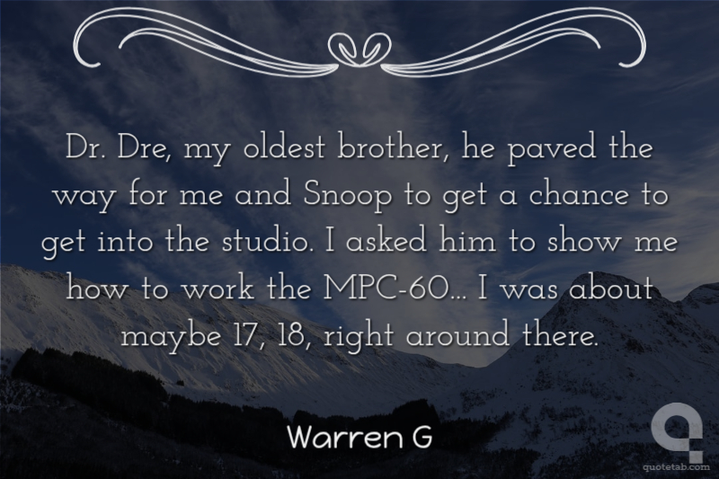 Dr. Dre, my oldest brother, he paved the way for me and Snoop to get a chance to get into the studio. I asked him to show me how to work the MPC-60... I was about maybe 17, 18, right around there.