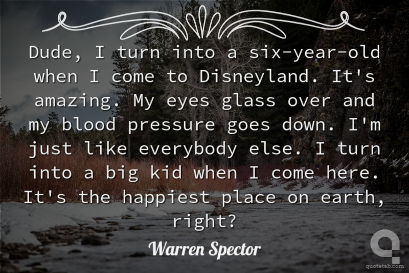 Dude, I turn into a six-year-old when I come to Disneyland. It's amazing. My eyes glass over and my blood pressure goes down. I'm just like everybody else. I turn into a big kid when I come here. It's the happiest place on earth, right?