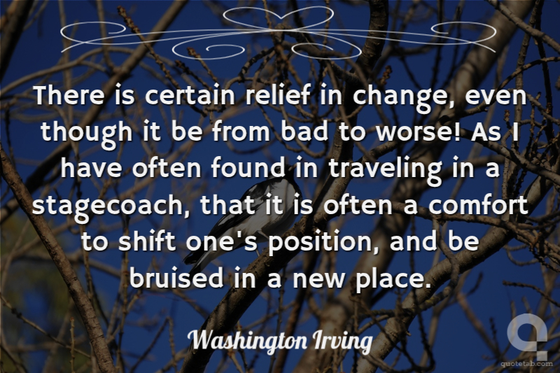 There is certain relief in change, even though it be from bad to worse! As I have often found in traveling in a stagecoach, that it is often a comfort to shift one's position, and be bruised in a new place.