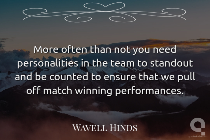 More often than not you need personalities in the team to standout and be counted to ensure that we pull off match winning performances.