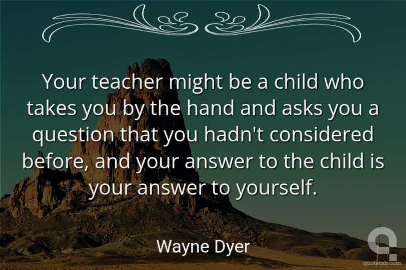 Your teacher might be a child who takes you by the hand and asks you a question that you hadn't considered before, and your answer to the child is your answer to yourself.