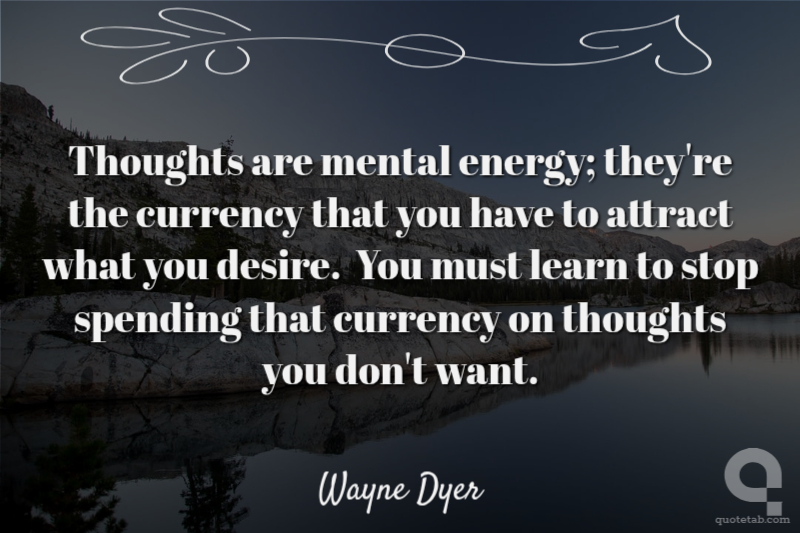 Thoughts are mental energy; they're the currency that you have to attract what you desire. You must learn to stop spending that currency on thoughts you don't want.