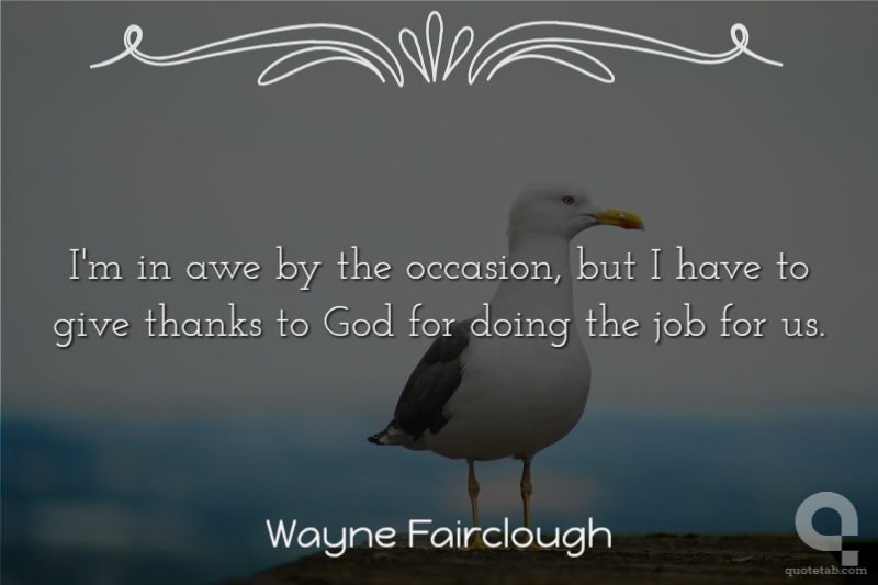 I'm in awe by the occasion, but I have to give thanks to God for doing the job for us.