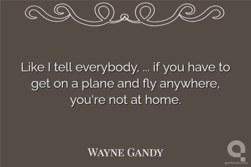 Like I tell everybody, ... if you have to get on a plane and fly anywhere, you're not at home.