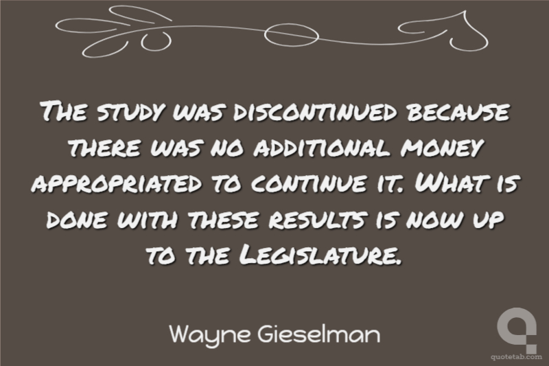 The study was discontinued because there was no additional money appropriated to continue it. What is done with these results is now up to the Legislature.
