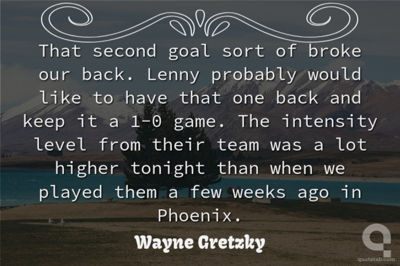 That second goal sort of broke our back. Lenny probably would like to have that one back and keep it a 1-0 game. The intensity level from their team was a lot higher tonight than when we played them a few weeks ago in Phoenix.