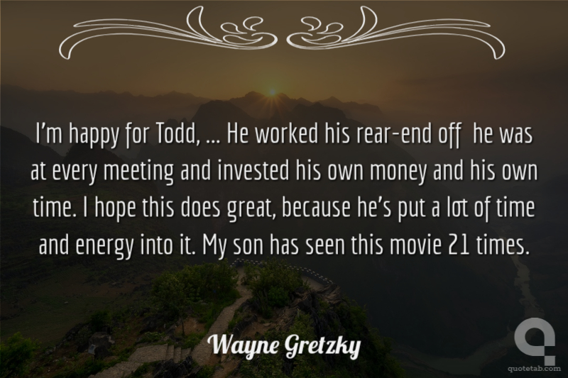 I'm happy for Todd, ... He worked his rear-end off he was at every meeting and invested his own money and his own time. I hope this does great, because he's put a lot of time and energy into it. My son has seen this movie 21 times.