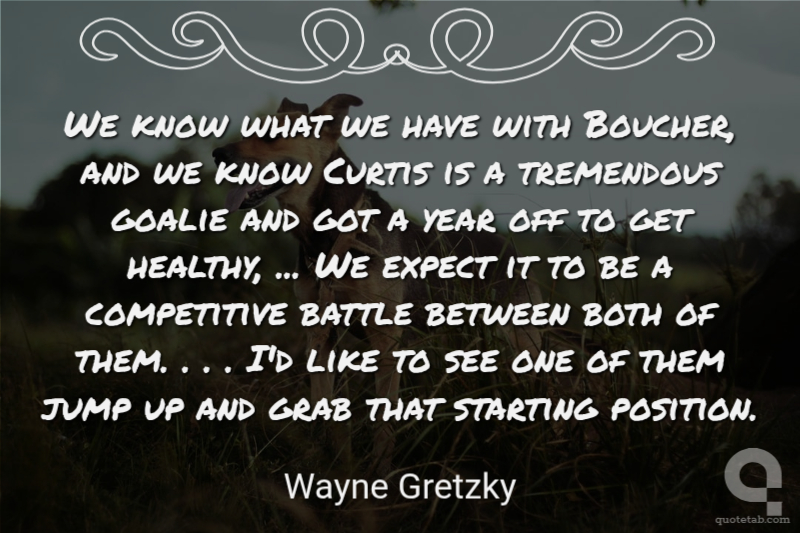 We know what we have with Boucher, and we know Curtis is a tremendous goalie and got a year off to get healthy, ... We expect it to be a competitive battle between both of them. . . . I'd like to see one of them jump up and grab that starting position.