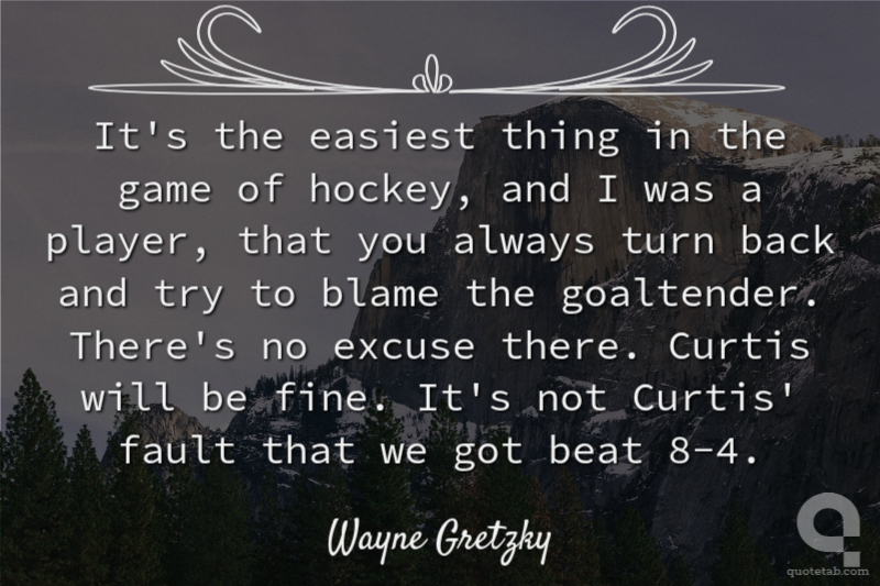 It's the easiest thing in the game of hockey, and I was a player, that you always turn back and try to blame the goaltender. There's no excuse there. Curtis will be fine. It's not Curtis' fault that we got beat 8-4.