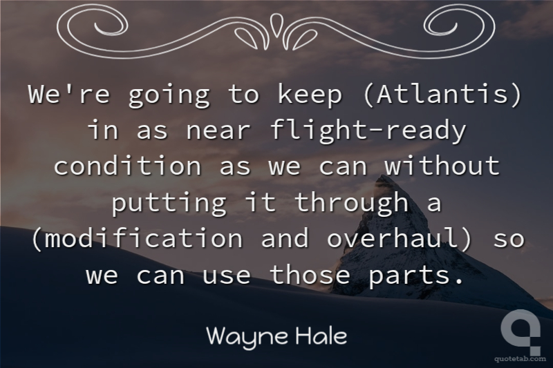 We're going to keep (Atlantis) in as near flight-ready condition as we can without putting it through a (modification and overhaul) so we can use those parts.