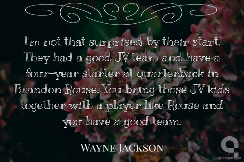 I'm not that surprised by their start. They had a good JV team and have a four-year starter at quarterback in Brandon Rouse. You bring those JV kids together with a player like Rouse and you have a good team.