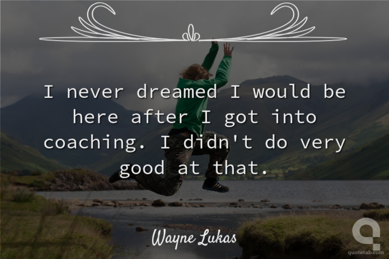 I never dreamed I would be here after I got into coaching. I didn't do very good at that.