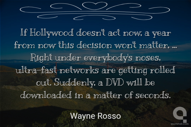 If Hollywood doesn't act now, a year from now this decision won't matter, ... Right under everybody's noses, ultra-fast networks are getting rolled out. Suddenly, a DVD will be downloaded in a matter of seconds.