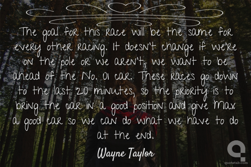 The goal for this race will be the same for every other racing, ... It doesn't change if we're on the pole or we aren't, we want to be ahead of the No. 01 car. These races go down to the last 20 minutes, so the priority is to bring the car in a good position and give Max a good car so we can do what we have to do at the end.