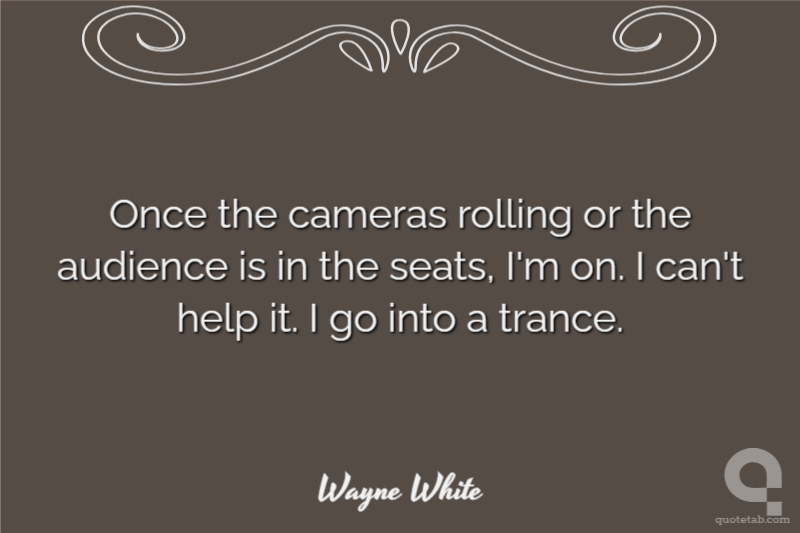 Once the cameras rolling or the audience is in the seats, I'm on. I can't help it. I go into a trance.