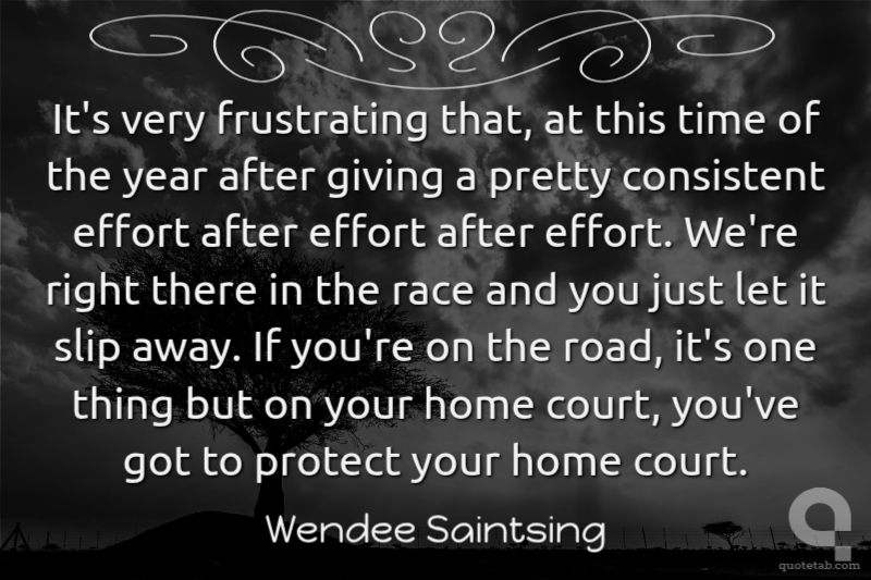 It's very frustrating that, at this time of the year after giving a pretty consistent effort after effort after effort. We're right there in the race and you just let it slip away. If you're on the road, it's one thing but on your home court, you've got to protect your home court.