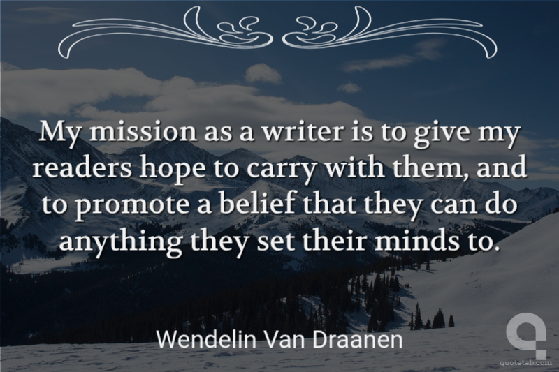 My mission as a writer is to give my readers hope to carry with them, and to promote a belief that they can do anything they set their minds to.