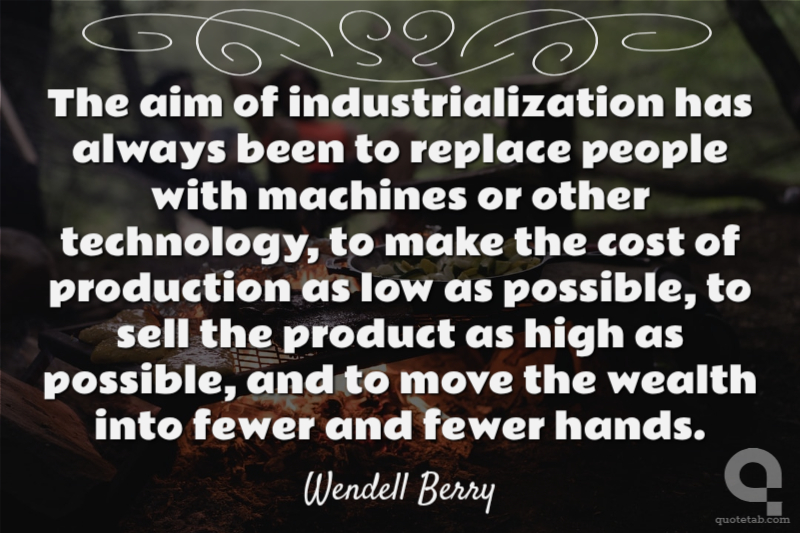 The aim of industrialization has always been to replace people with machines or other technology, to make the cost of production as low as possible, to sell the product as high as possible, and to move the wealth into fewer and fewer hands.