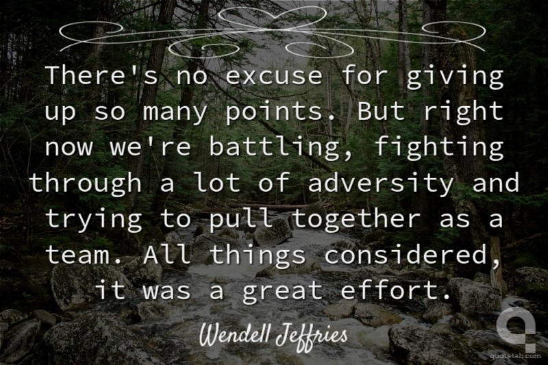 There's no excuse for giving up so many points. But right now we're battling, fighting through a lot of adversity and trying to pull together as a team. All things considered, it was a great effort.