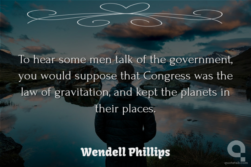 To hear some men talk of the government, you would suppose that Congress was the law of gravitation, and kept the planets in their places.