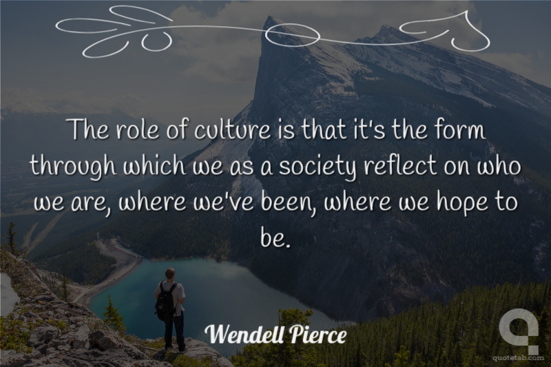The role of culture is that it's the form through which we as a society reflect on who we are, where we've been, where we hope to be.