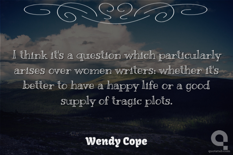 I think it's a question which particularly arises over women writers: whether it's better to have a happy life or a good supply of tragic plots.
