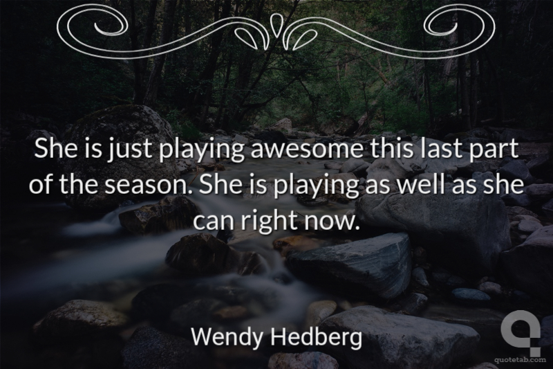 She is just playing awesome this last part of the season. She is playing as well as she can right now.