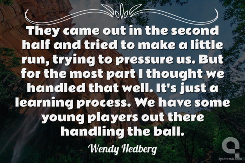 They came out in the second half and tried to make a little run, trying to pressure us. But for the most part I thought we handled that well. It's just a learning process. We have some young players out there handling the ball.