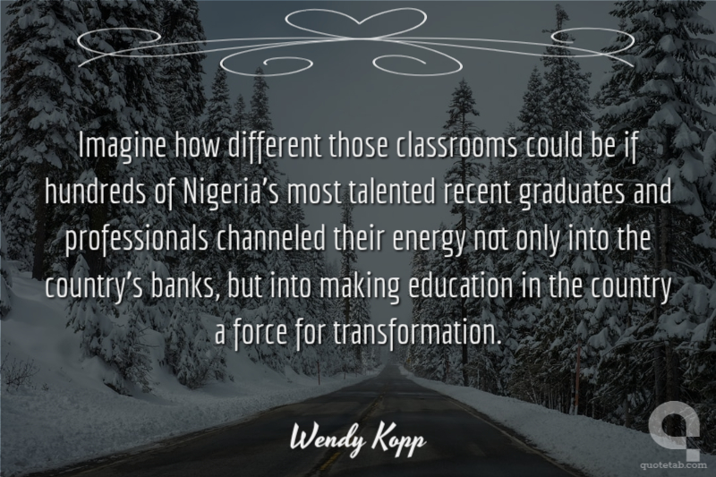 Imagine how different those classrooms could be if hundreds of Nigeria's most talented recent graduates and professionals channeled their energy not only into the country's banks, but into making education in the country a force for transformation.
