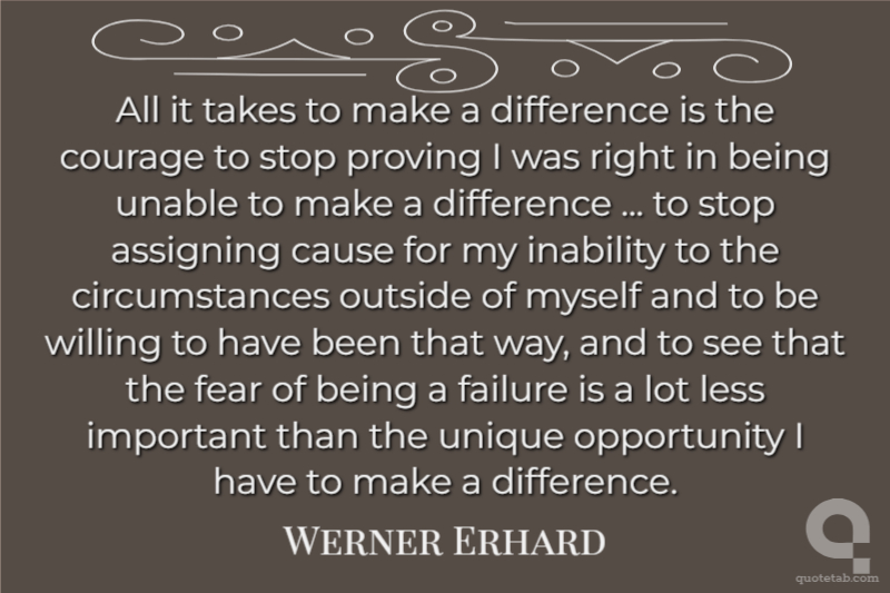 All it takes to make a difference is the courage to stop proving I was right in being unable to make a difference ... to stop assigning cause for my inability to the circumstances outside of myself and to be willing to have been that way, and to see that the fear of being a failure is a lot less important than the unique opportunity I have to make a difference.