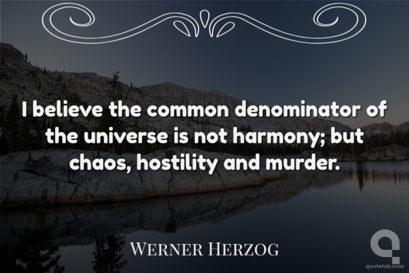 I believe the common denominator of the universe is not harmony; but chaos, hostility and murder.