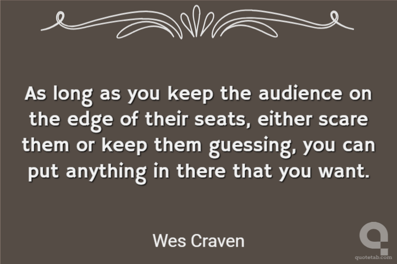 The audience that would see that movie, by and large, doesn't go to see horror films, ... It was a great pleasure to make, and to see Meryl (Streep) nominated (for a best actress Oscar) for it. But most of the people I run into who loved it are surprised that I made it. When you have a name that means scares, you have to live with that.