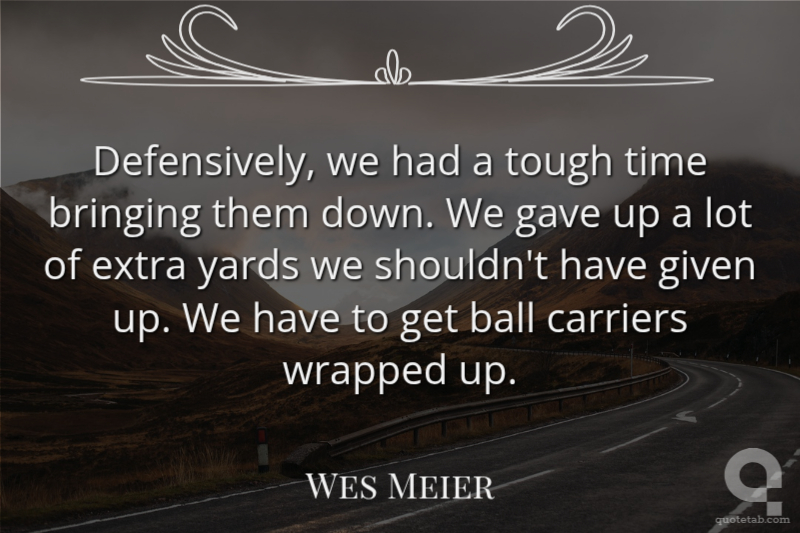 Defensively, we had a tough time bringing them down. We gave up a lot of extra yards we shouldn't have given up. We have to get ball carriers wrapped up.