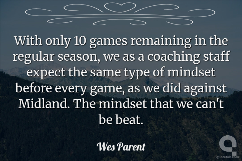 With only 10 games remaining in the regular season, we as a coaching staff expect the same type of mindset before every game, as we did against Midland. The mindset that we can't be beat.