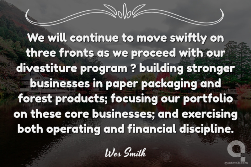 We will continue to move swiftly on three fronts as we proceed with our divestiture program ? building stronger businesses in paper packaging and forest products; focusing our portfolio on these core businesses; and exercising both operating and financial discipline.