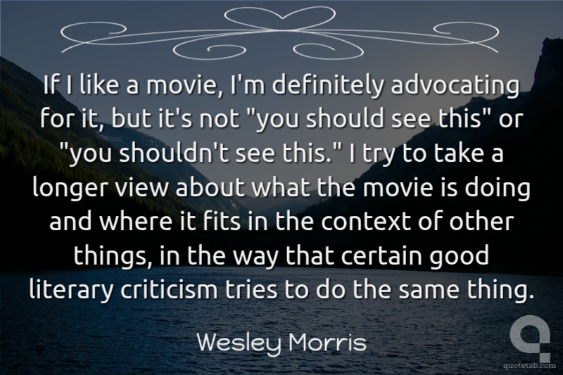 If I like a movie, I'm definitely advocating for it, but it's not "you should see this" or "you shouldn't see this." I try to take a longer view about what the movie is doing and where it fits in the context of other things, in the way that certain good literary criticism tries to do the same thing.