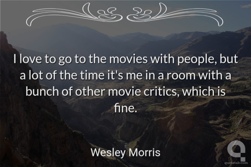 I love to go to the movies with people, but a lot of the time it's me in a room with a bunch of other movie critics, which is fine.