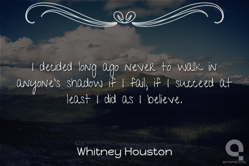 I decided long ago never to walk in anyone's shadow if I fail, if I succeed at least I did as I believe.