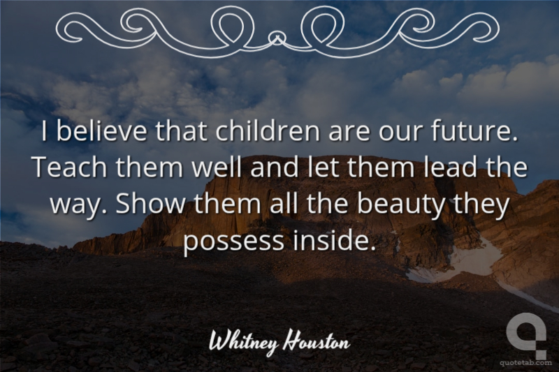 I believe that children are our future. Teach them well and let them lead the way. Show them all the beauty they possess inside.