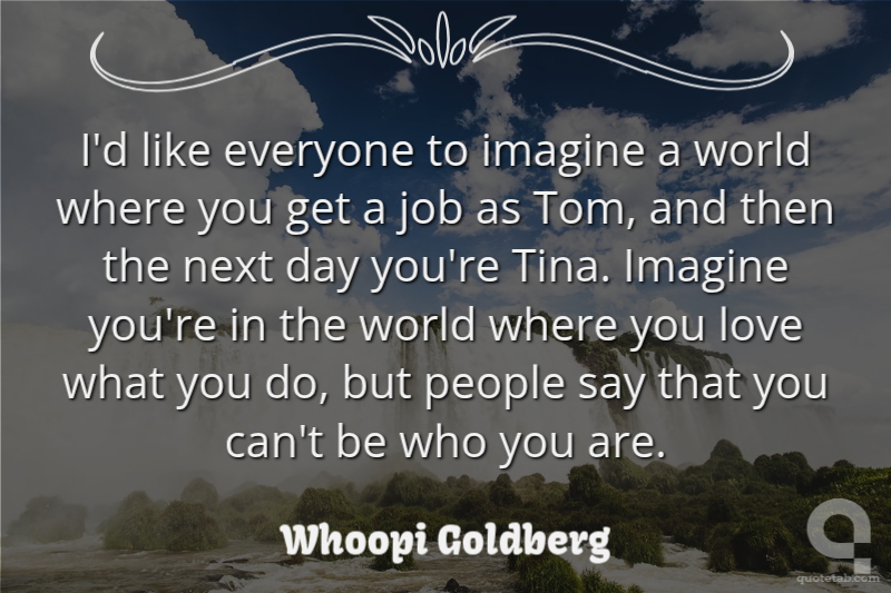 I'd like everyone to imagine a world where you get a job as Tom, and then the next day you're Tina. Imagine you're in the world where you love what you do, but people say that you can't be who you are.