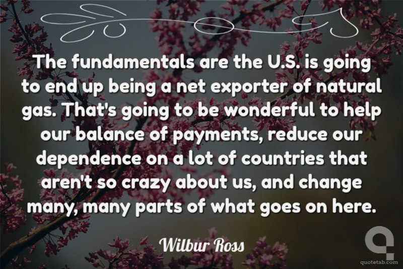 The fundamentals are the U.S. is going to end up being a net exporter of natural gas. That's going to be wonderful to help our balance of payments, reduce our dependence on a lot of countries that aren't so crazy about us, and change many, many parts of what goes on here.
