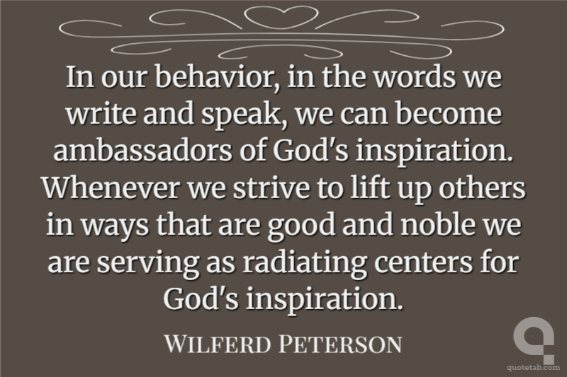 In our behavior, in the words we write and speak, we can become ambassadors of God's inspiration. Whenever we strive to lift up others in ways that are good and noble we are serving as radiating centers for God's inspiration.