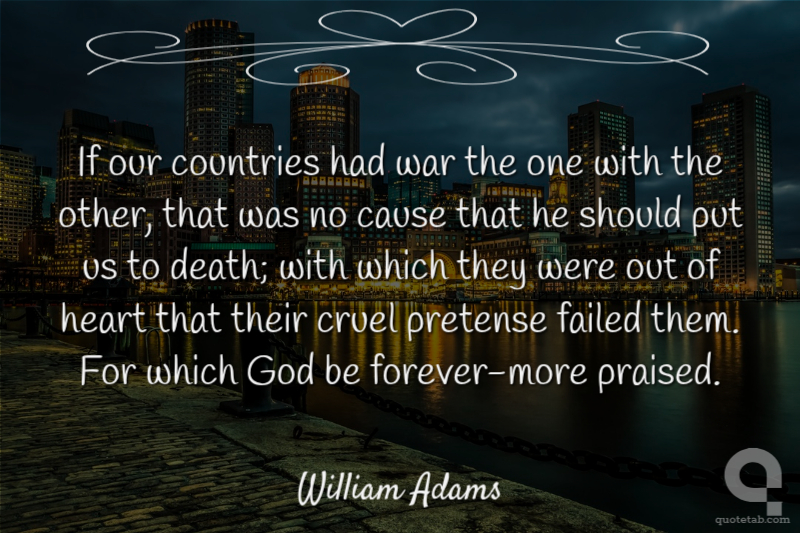 If our countries had war the one with the other, that was no cause that he should put us to death; with which they were out of heart that their cruel pretense failed them. For which God be forever-more praised.