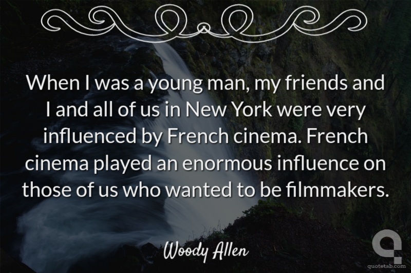 When I was a young man, my friends and I and all of us in New York were very influenced by French cinema. French cinema played an enormous influence on those of us who wanted to be filmmakers.