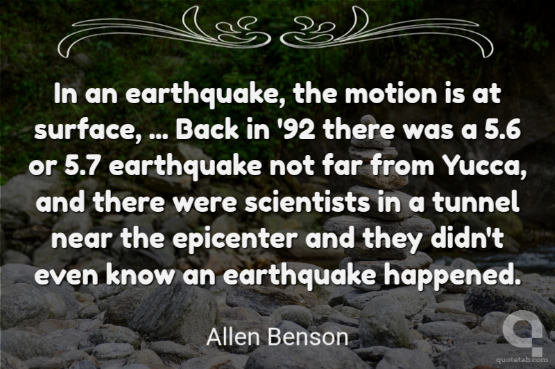 In an earthquake, the motion is at surface, ... Back in '92 there was a 5.6 or 5.7 earthquake not far from Yucca, and there were scientists in a tunnel near the epicenter and they didn't even know an earthquake happened.