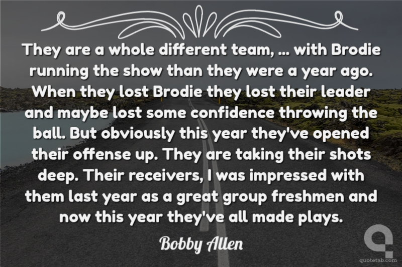 They are a whole different team, ... with Brodie running the show than they were a year ago. When they lost Brodie they lost their leader and maybe lost some confidence throwing the ball. But obviously this year they've opened their offense up. They are taking their shots deep. Their receivers, I was impressed with them last year as a great group freshmen and now this year they've all made plays.