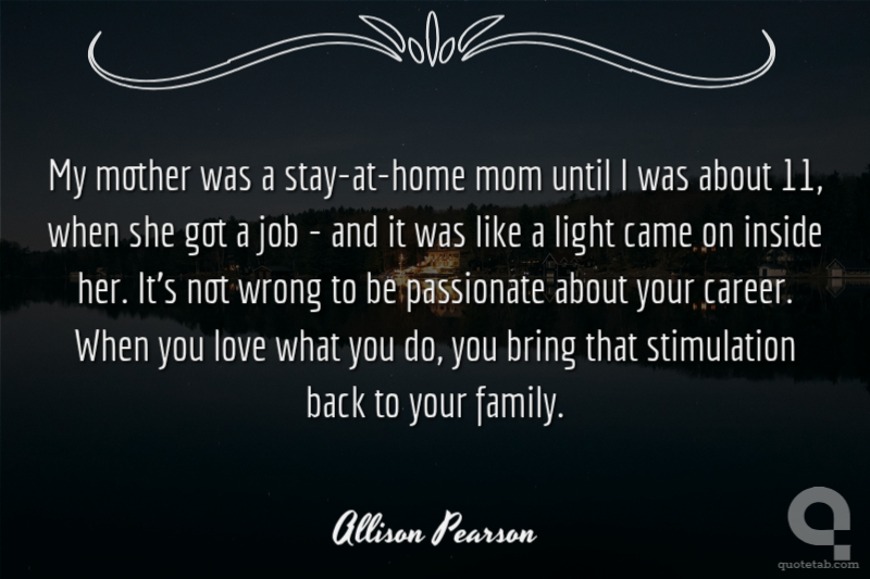 My mother was a stay-at-home mom until I was about 11, when she got a job - and it was like a light came on inside her. It's not wrong to be passionate about your career. When you love what you do, you bring that stimulation back to your family.