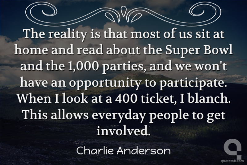 The reality is that most of us sit at home and read about the Super Bowl and the 1,000 parties, and we won't have an opportunity to participate. When I look at a 400 ticket, I blanch. This allows everyday people to get involved.