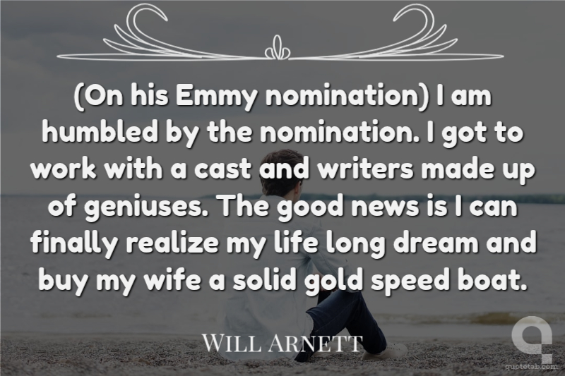 (On his Emmy nomination) I am humbled by the nomination. I got to work with a cast and writers made up of geniuses. The good news is I can finally realize my life long dream and buy my wife a solid gold speed boat.