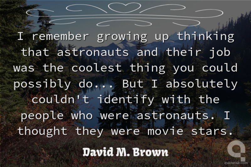 I remember growing up thinking that astronauts and their job was the coolest thing you could possibly do... But I absolutely couldn't identify with the people who were astronauts. I thought they were movie stars.